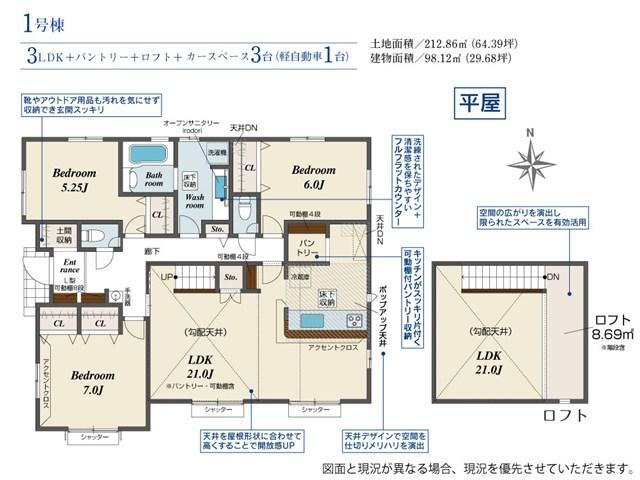 | 土地面積 | 212.86m2(64.38坪)(登記) | 土地権利 | 所有権 |
