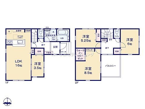 - LDK16帖、カウンターキッチン、主寝室8帖以上、収納充実、WIC、本下水、ワイドバルコニー