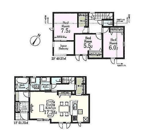 | 設備 | 上水道・都市ガス・本下水・コンロ2口以上・システムキッチン・給湯・追焚機能・シャンプードレッサ・床下収納・ウォークインクローゼット・室内洗濯機置き場・バルコニー・フローリング・モニタ付インターホン・温水洗浄便座・カウンターキッチン・浴室乾燥機・洗面所独立・クローゼット・シューズボックス・オートバス | ||||