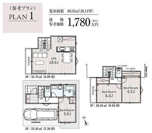 | 土地面積 | 54.27m2(実測) | 坪単価 | 286.4万円 |