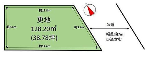 | 土地面積 | 128.2m2(公簿) | 坪単価 | 45.9万円 |