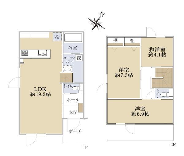 トイレ・温水洗浄便座・システムキッチン・モニタ付インターホン・対面K・トイレ2ヶ所・IHクッキングヒータ |