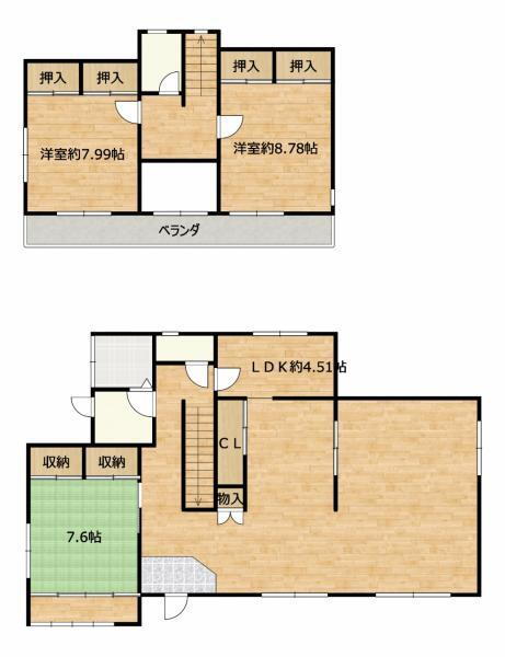 | 建物面積 | 144.78m2(43.79坪)(登記) | 建物構造・規模 | 軽量鉄骨2階建 |