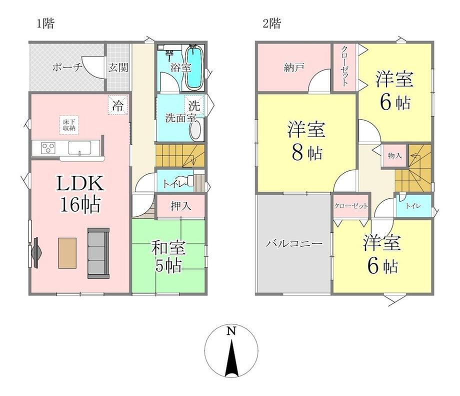 バルコニー・トイレ・洗面所・シャンプードレッサ・温水洗浄便座・庭・対面K・トイレ2ヶ所・2面バルコニー・上水道・浄化槽 |