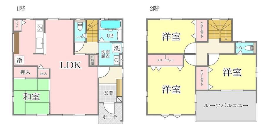 バルコニー・トイレ・収納スペース・洗面所・シャンプードレッサ・温水洗浄便座・システムキッチン・モニタ付インターホン・風呂・庭・対面K・トイレ2ヶ所・床下収納・2面バルコニー・上水道・本下水 |