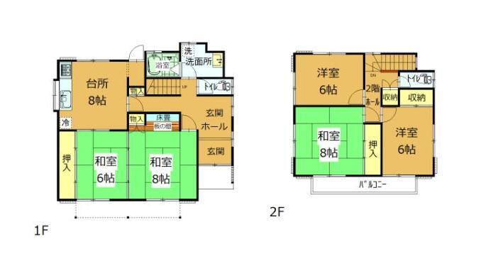 | 設備 | トイレ・温水洗浄便座・システムキッチン・風呂・庭・LPガス・トイレ2ヶ所・上水道・本下水・駐車場2台分・リフォーム | ||||