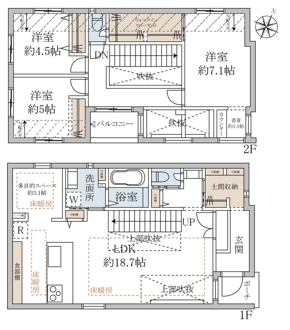 | 設備 | バルコニー・トイレ・収納スペース・洗面所・浴室乾燥機・ウォークインクローゼット・シャンプードレッサ・温水洗浄便座・システムキッチン・モニタ付インターホン・風呂・対面K・トイレ2ヶ所・床下収納・IHクッキングヒータ・床暖房・2面バルコニー・衣類乾燥機・食器洗浄乾燥機・上水道・浄化槽・駐車場2台分・リフォーム・フローリング・シューズインクローク | ||||