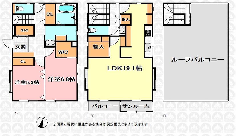 建物面積 95.95m2(登記) 建物構造・規模 RC2階建