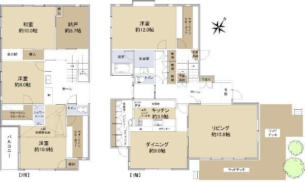 バルコニー・トイレ・収納スペース・洗面所・浴室乾燥機・ウォークインクローゼット・シャンプードレッサ・温水洗浄便座・モニタ付インターホン・風呂・トイレ2ヶ所・床下収納・グルニエ・浄水器・衣類乾燥機・食器洗浄乾燥機・駐車場2台分・都市ガス |