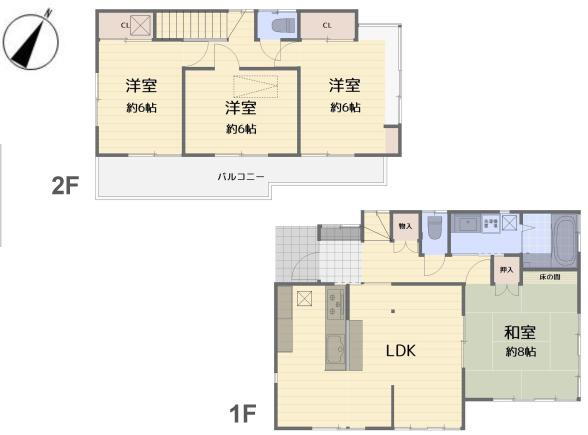 | 設備 | ロフト・バルコニー・トイレ・収納スペース・洗面所・シャンプードレッサ・システムキッチン・モニタ付インターホン・風呂・庭・対面K・トイレ2ヶ所・床下収納・上水道・本下水・リフォーム | ||||