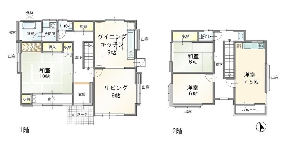 収納スペース・都市ガス・トイレ2ヶ所・床下収納・上水道・本下水 |