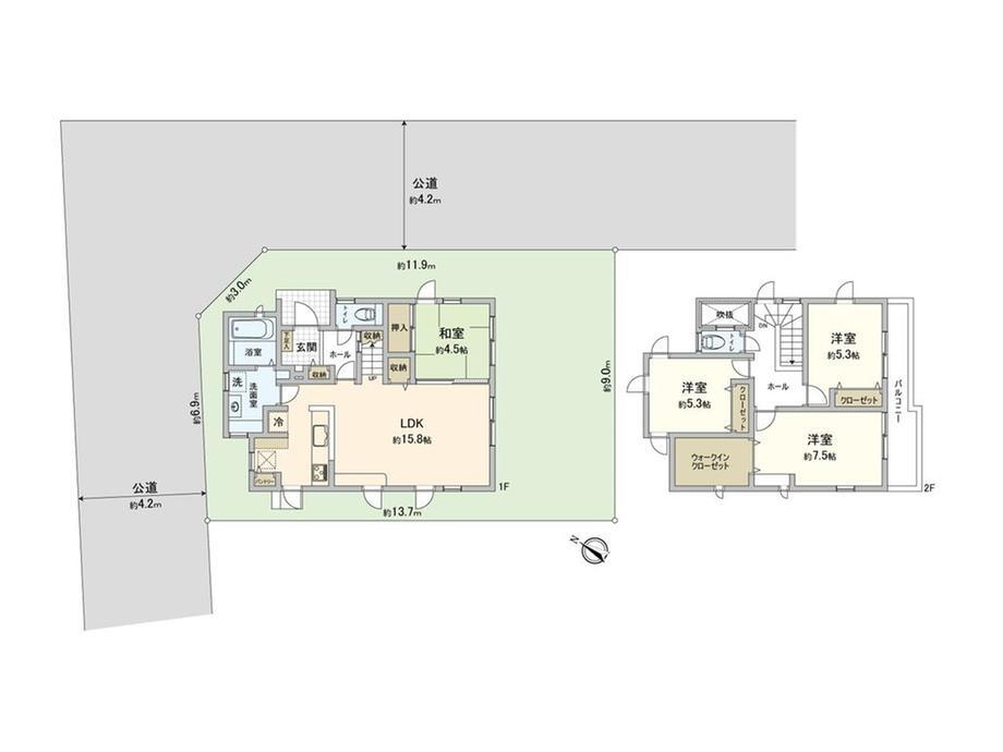 北東4.2m接面11.9m 北西4.2m接面6.9m 二方道路 |