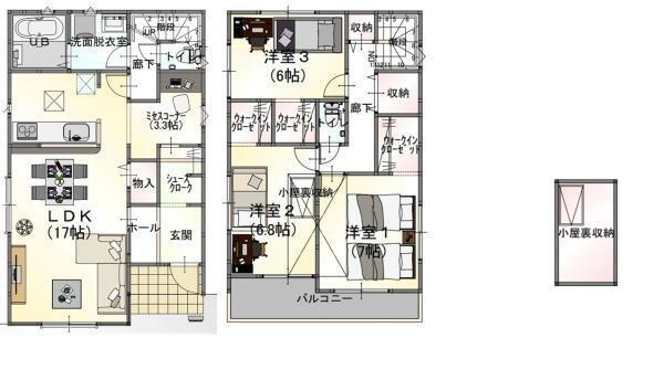 | 設備 | バルコニー・トイレ・収納スペース・洗面所・都市ガス・浴室乾燥機・ウォークインクローゼット・シャンプードレッサ・温水洗浄便座・システムキッチン・モニタ付インターホン・風呂・トイレ2ヶ所・床下収納・グルニエ・衣類乾燥機・複層ガラス・上水道・本下水・駐車場2台分・フローリング・シューズインクローク | ||||