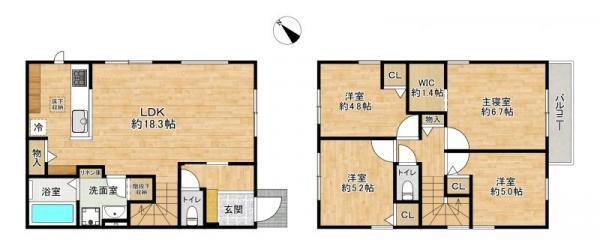 バルコニー・トイレ・収納スペース・都市ガス・浴室乾燥機・ウォークインクローゼット・温水洗浄便座・システムキッチン・モニタ付インターホン・風呂・対面K・トイレ2ヶ所・床下収納・浄水器・衣類乾燥機・複層ガラス・上水道・本下水・駐車場2台分・フローリング |