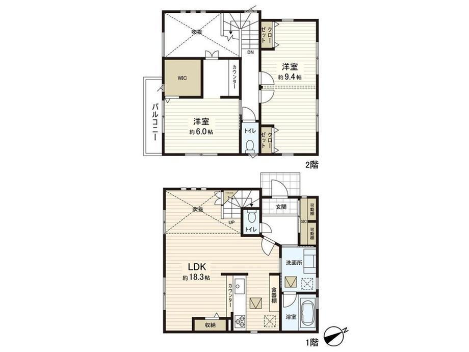 トイレ・収納スペース・洗面所・都市ガス・浴室乾燥機・ウォークインクローゼット・シャンプードレッサ・温水洗浄便座・システムキッチン・モニタ付インターホン・風呂・対面K・トイレ2ヶ所・床下収納・衣類乾燥機・上水道・本下水・フローリング |