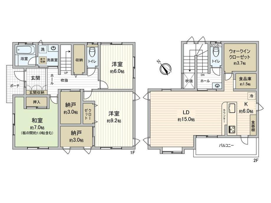 収納スペース・都市ガス・浴室乾燥機・ウォークインクローゼット・システムキッチン・モニタ付インターホン・風呂・対面K・トイレ2ヶ所・床下収納・浄水器・衣類乾燥機・上水道・本下水 |