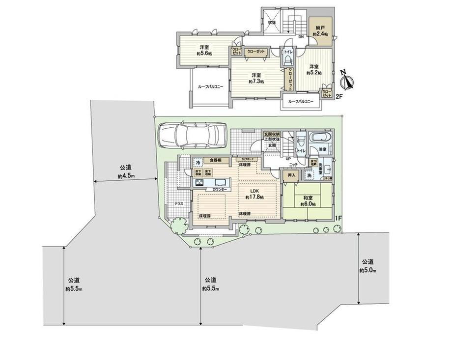 バルコニー・トイレ・収納スペース・洗面所・都市ガス・浴室乾燥機・シャンプードレッサ・温水洗浄便座・システムキッチン・モニタ付インターホン・風呂・テラス・対面K・トイレ2ヶ所・床下収納・ルーフバルコニー・床暖房・2面バルコニー・衣類乾燥機・上水道・本下水 |