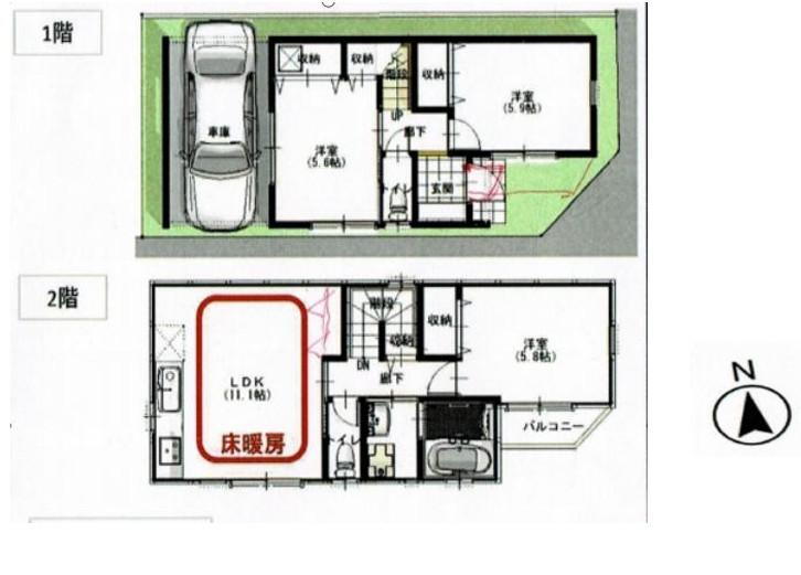 バルコニー・トイレ・収納スペース・都市ガス・浴室乾燥機・温水洗浄便座・システムキッチン・モニタ付インターホン・風呂・トイレ2ヶ所・床暖房・衣類乾燥機・食器洗浄乾燥機・上水道・本下水・フローリング |