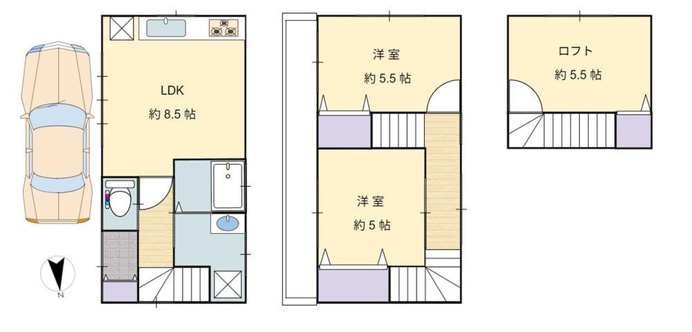 ロフト・トイレ・収納スペース・都市ガス・浴室乾燥機・温水洗浄便座・システムキッチン・モニタ付インターホン・風呂・床暖房・衣類乾燥機・上水道・本下水・フローリング |