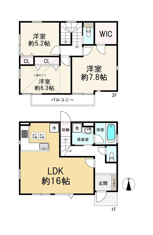 ロフト・バルコニー・収納スペース・都市ガス・ウォークインクローゼット・システムキッチン・モニタ付インターホン・風呂・対面K・トイレ2ヶ所・床下収納・上水道・本下水・フローリング |