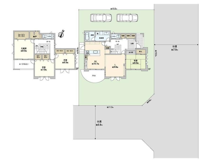 バルコニー・トイレ・収納スペース・都市ガス・ウォークインクローゼット・温水洗浄便座・システムキッチン・モニタ付インターホン・風呂・テラス・庭・対面K・トイレ2ヶ所・ルーフバルコニー・2面バルコニー・食器洗浄乾燥機・上水道・本下水・シューズインクローク |