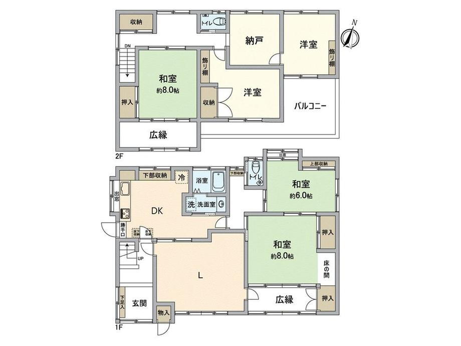 バルコニー・トイレ・収納スペース・都市ガス・温水洗浄便座・システムキッチン・風呂・庭・トイレ2ヶ所・床下収納・上水道・本下水 |