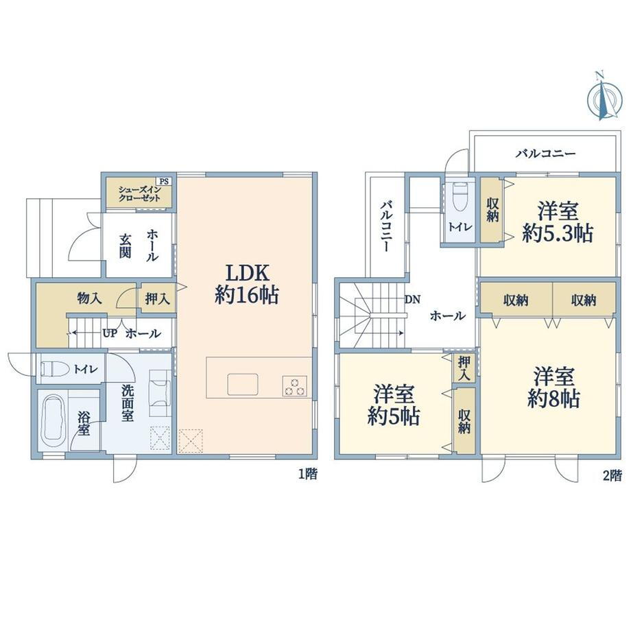- ・2020年3月築の中古一戸建です。・土地125.73㎡、建物は97.54㎡の2階建・カースペースは並列で3台駐車可・建物は一条工務店の旧施工による建物です。・前面道路との高低差はありません。