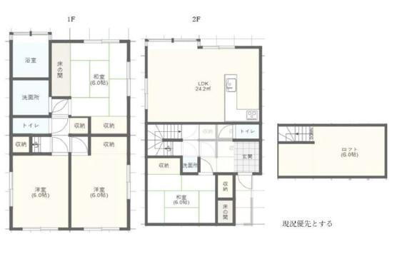 | 設備 | ロフト・収納スペース・都市ガス・風呂・対面K・トイレ2ヶ所・リフォーム | ||||