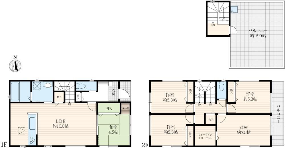 | 設備 | バルコニー・トイレ・収納スペース・洗面所・ウォークインクローゼット・シャンプードレッサ・温水洗浄便座・システムキッチン・モニタ付インターホン・風呂・対面K・トイレ2ヶ所・ルーフバルコニー・IHクッキングヒータ・浄水器・複層ガラス・上水道・本下水・シューズインクローク | ||||