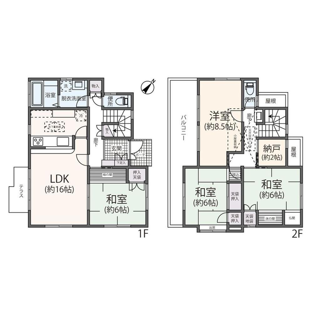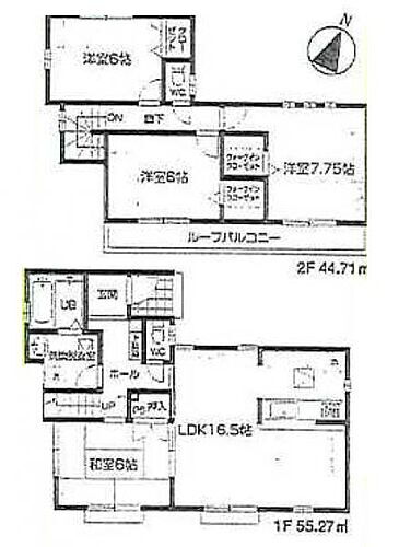 | 設備 | バルコニー・収納スペース・風呂・LPガス・対面K・トイレ2ヶ所・床下収納・グルニエ・上水道・本下水・駐車場2台分 | ||||