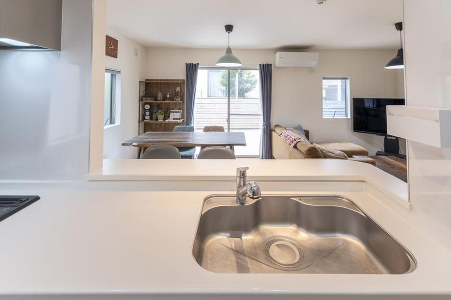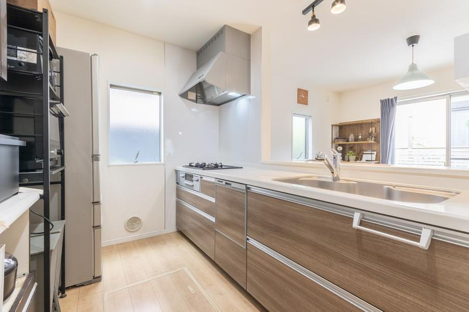 - 《室内の特徴》・引き戸で仕切られた約4.5畳の和室は、引き戸を開放することでリビングダイニングと一体で利用することも可能な間取り設計となっています。・キッチン・浴室・洗面室・お手洗いなど各種水回りには窓が設置されており、湿気や臭いがこもりにくく、衛生的です。・各居室収納の他、階段下収納や2階部分に納戸も有り収納豊富です。・システムキッチンは、リビングを見渡せるカウンター式。お子様の様子を見ながら、ご家族との会話を楽しみながら、お料理をすることができます。また、完成したお料理を運ぶ手間を少しだけ軽減してくれます。・キッチンには、食洗機、浄水器が備え付けとなっています。