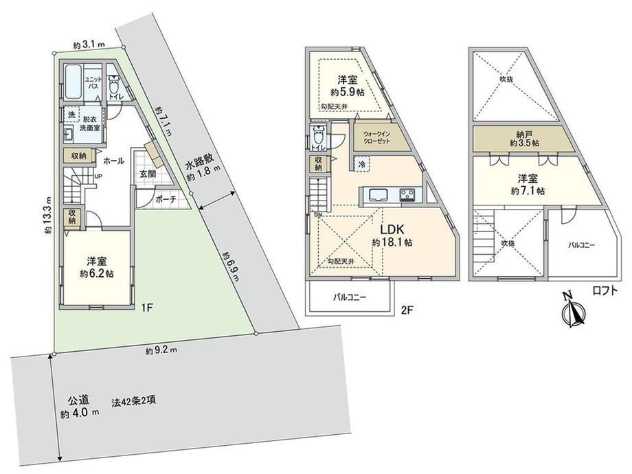 ロフト・バルコニー・収納スペース・洗面所・ウォークインクローゼット・シャンプードレッサ・風呂・対面K・トイレ2ヶ所・IHクッキングヒータ・上水道・本下水 |