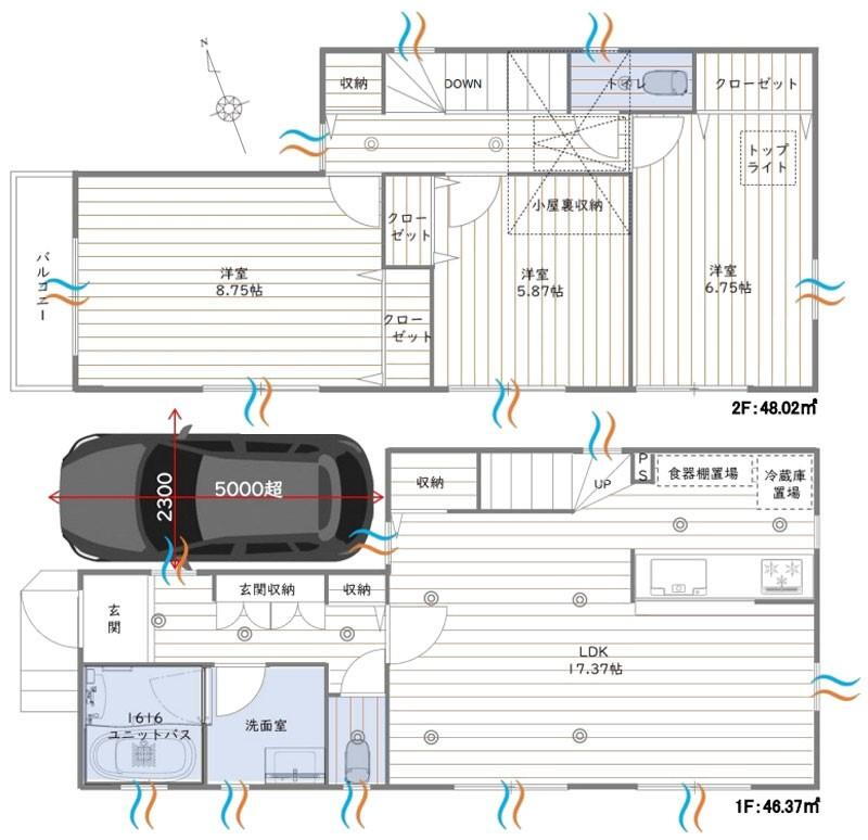 | 建物面積 | 94.39m2(28.55坪) | 建物構造・規模 | 木造2階建 |