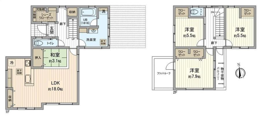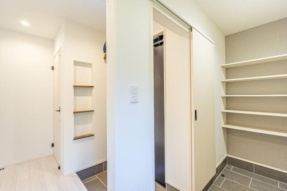 収納スペース・都市ガス・浴室乾燥機・モニタ付インターホン・風呂・対面K・トイレ2ヶ所・床下収納・衣類乾燥機・食器洗浄乾燥機・上水道・浄化槽・シューズインクローク |