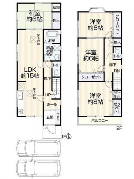 | 設備 | バルコニー・トイレ・収納スペース・洗面所・都市ガス・浴室乾燥機・シャンプードレッサ・温水洗浄便座・システムキッチン・モニタ付インターホン・風呂・トイレ2ヶ所・床下収納・衣類乾燥機・上水道・本下水・駐車場2台分・リフォーム |