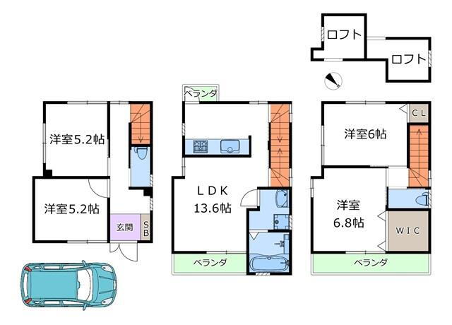 | 設備 | ロフト・バルコニー・トイレ・洗面所・都市ガス・浴室乾燥機・ウォークインクローゼット・シャンプードレッサ・温水洗浄便座・システムキッチン・モニタ付インターホン・風呂・対面K・トイレ2ヶ所・2面バルコニー・衣類乾燥機・食器洗浄乾燥機・上水道・本下水・リフォーム・フローリング | ||||