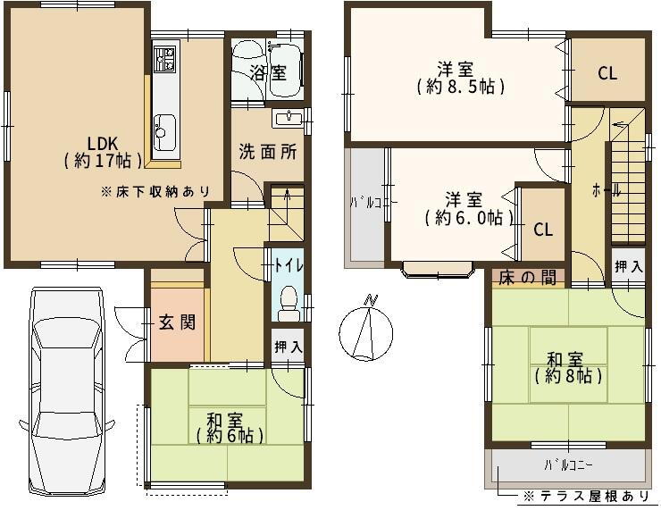| 設備 | バルコニー・収納スペース・風呂・対面K・床下収納・2面バルコニー・上水道・本下水 | ||||