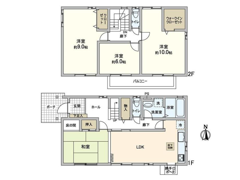 バルコニー・トイレ・収納スペース・洗面所・都市ガス・浴室乾燥機・ウォークインクローゼット・シャンプードレッサ・温水洗浄便座・システムキッチン・風呂・トイレ2ヶ所・床下収納・衣類乾燥機・上水道・本下水 |