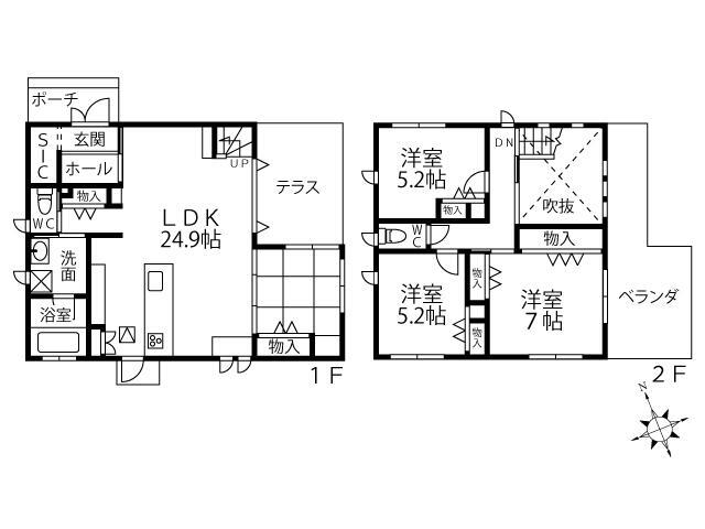 バルコニー・トイレ・収納スペース・洗面所・浴室乾燥機・シャンプードレッサ・温水洗浄便座・システムキッチン・モニタ付インターホン・風呂・テラス・対面K・トイレ2ヶ所・IHクッキングヒータ・浄水器・衣類乾燥機・食器洗浄乾燥機・複層ガラス・上水道・本下水・駐車場2台分・省エネ給湯器・シューズインクローク |