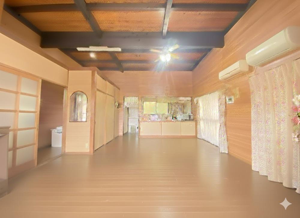 - 落ち着いた暮らしが可能な自然あふれる立地環境。天井も高く、室内もゆったり過ごせる設計となっています。【ポイント】◆壁・天井・床まで木目調で統一されており、ナチュラルで落ち着いた雰囲気◆ダークカラーの梁が天井のデザインに深みを与え、和モダンな印象を演出◆ゆったり17.5帖のリビングが解放感を与える居心地の良い空間◆7.5帖の洋室は独立しており、ワークスペース・書斎など用途も多彩◆単身~ファミリーまで対応できる柔軟な間取り◆自然あふれる立地環境