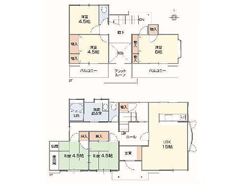 | 間取り | 5LDK(LDK 16 和 4.5・4.5 洋 6・4.5・4.5) | 築年月(築年数) | 1995年3月(築30年10ヶ月) |