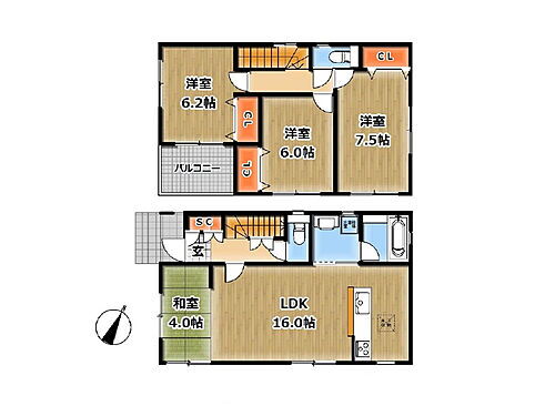 | 間取り | 4LDK(和 4 LDK 16 洋 7.5・6.2・6) | 築年月(築年数) | 2020年8月(築5年4ヶ月) |