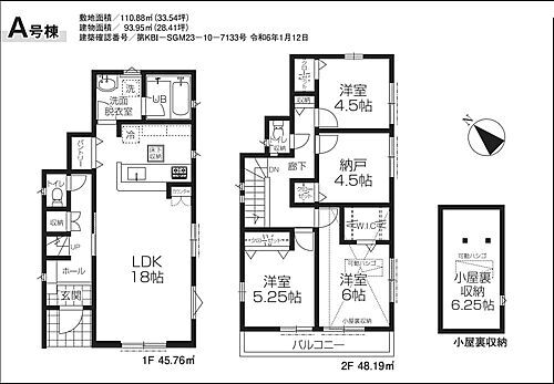 | 間取り | 4LDK(LDK 18 洋 4.5×2・5.2・6 その他 6.2) | 築年月(築年数) | 2024年4月(築1年7ヶ月) |