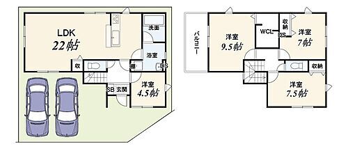 | 間取り | 4LDK(LDK 22 洋 9.5・7.5・7 和 4.5) | 築年月(築年数) | 2021年11月(築4年2ヶ月) |