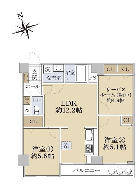 | 所在階/階数 | 2階/地上8階地下1階建 | バルコニー面積 | 4.94m2 |