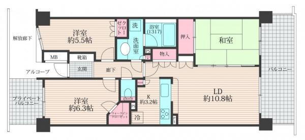 | 所在階/階数 | 3階/14階建 | バルコニー面積 | 12.2m2 |