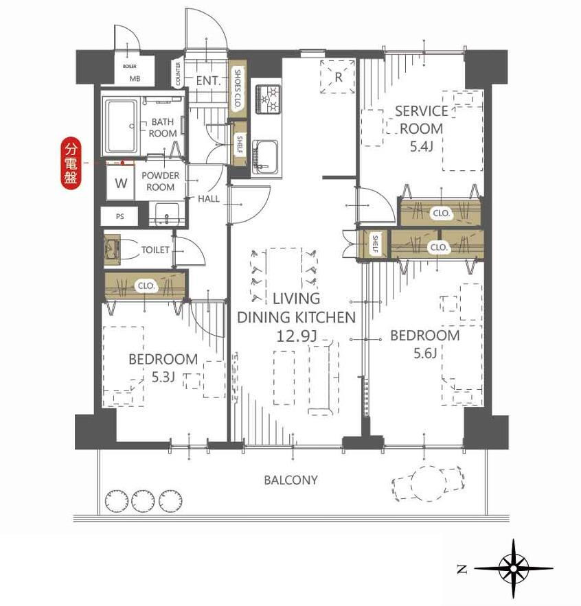 | 所在階/階数 | 2階/6階建 | バルコニー面積 | 12.15m2 |