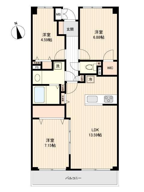 間取り 3LDK 専有面積 65.41m2(壁芯)