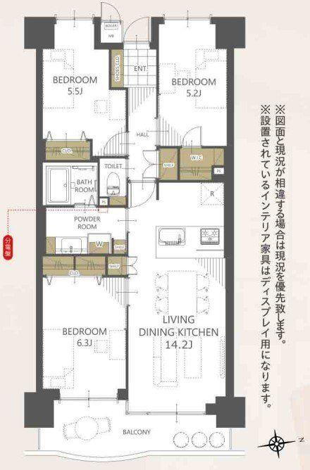 | 総戸数 | 78戸 | 専有面積 | 71.81m2(21.72坪)(壁芯) |