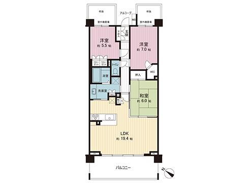 | 所在階/階数 | 3階/5階建 | バルコニー面積 | 14m2 |